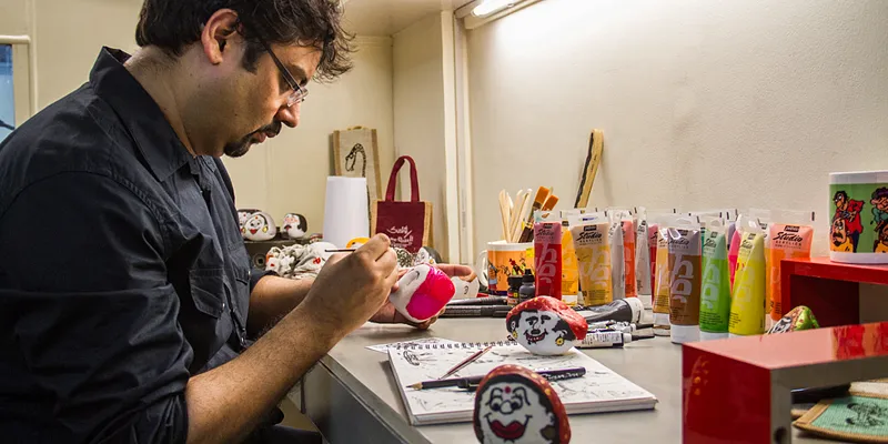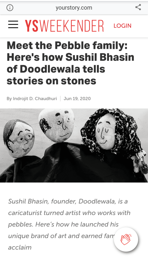 Since 2005 he has been working on a unique canvas – pebbles. His art is quirky as he brings pebbles to life by giving them human emotions, expressions and interconnections.